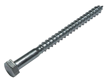 Шуруп для крепления лаг и реек конструктивно представлен в виде металлического стержня с редкой резьбой под дерево. Головка у этих шурупов имеет шестигранную форму, под ключ или шестигранную биту. Резьба, в зависимости от типоразмера шурупа, располагается на все длину или немного не доходит до шляпки.