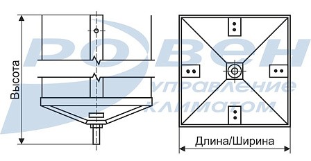 Поддон крепится к стакану до установки крышного вентилятора ВКРФ-М. Крепление поддона осуществляется четырьмя специальными болтами.