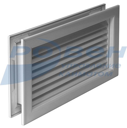 Решетки состоят из двух прямоугольных рам – наружной и внутренней. Во внутренней раме неподвижно закреплены V-образные горизонтальные жалюзи, препятствующие обзору через решетку. Наружная рама устанавливается в дверной или стеновой проем и закрепляется самонарезающими винтами. Внутренняя рама устанавливается с противоположной стороны двери или стены. Размеры рам позволяют установить решетки на дверях или стенах толщиной от 25 до 50мм.