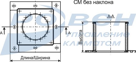 Компоновка стакана монтажного 13 - с обратным клапаном на приток, предназначена для установки крышного вентилятора на кровле с уклоном.Габаритные и присоединительные размеры стаканов монтажных СМ с регулировкой угла наклона кровли (мм)